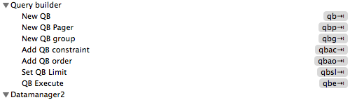 Here's a screenshot of shortcuts for the Query Builder.